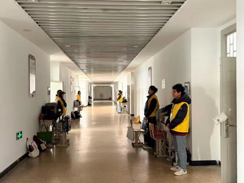 考试期间,全体工作人员恪尽职守,以高度的责任感投入考务保障工作。考生入场环节,工作人员严谨核查准考证,有序引导;候考区域,耐心解答考生疑问、规范存取物品;同时,积极协助监考老师落实各项考务安排。各个环节严谨细致,为考生营造了公平公正、秩序井然的考试环境。